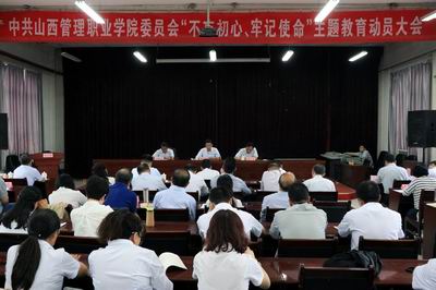 9月12日,555000jc赌船在敬勤楼报告厅召开“不忘初心、牢记使命”主题教育动员部署会,深入贯彻落实习近平总书记在“不忘初心、牢记使命”主题教育工作会议上的重要讲话精神和中央、山西省委部署要求,对全院主题教育进行全面动员和重点部署。