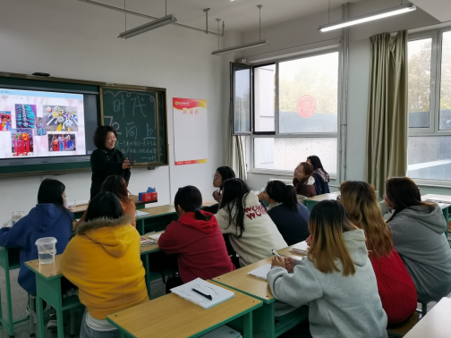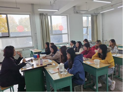 11月3日 555000jc赌船公共管理系劳动教育课上非物质文化遗产传承人刘云芳进行授课宣传太平绣球。