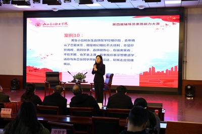 熟悉学情环节,采取PPT的形式展示,由院领导、嘉宾和大赛评委现场随机抽取,要求辅导员回答出学生的姓名、班级、籍贯、宿舍等信息,主要考察辅导员对学生信息的了解熟知程度。11名选手对学生情况了然于胸,均作出了迅速、准确的回答。