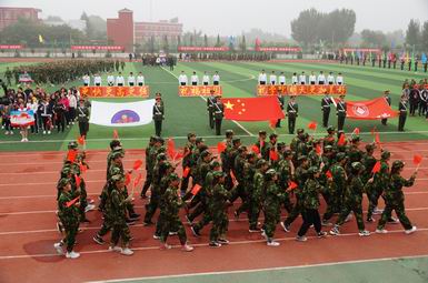 伴随着激昂的运动员进行曲,各代表队方阵整齐划一地走过主席台,坚定有力的步伐,显示出莘莘学子的蓬勃朝气和青春活力。2019级新生擒敌拳表演动作整齐、目光犀利、喊声震天,展现了新生的飒爽英姿;中专部广播操表演活力四射,将广播操跳出了活力,跳出了青春朝气;志在蓝天与社团表演,舞姿优美,舞动了青春旋律,放飞了青春理想,精彩纷呈,赢得阵阵掌声。