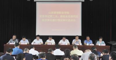 省审计厅党组成员、副厅长宋世华,省人社厅财务处处长王涛,省审计厅自然资源和生态环境审计处副处长、审计组组长梁卫中,审计组主审张泽斌,学院党委书记贾二元、院长马联合,原院长岳澎出席会议。省审计厅自然资源和生态环境审计处处长张晓明主持会议。
