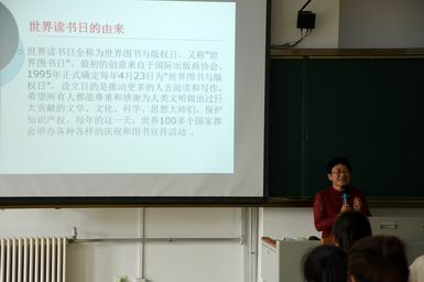 秦晶丽以“与经典同行,坚定民族文化自信——《论语》荐读”为题,从深入研读经典原著的独特视角,结合“世界读书日由来”、“读书对青年人的重要作用”、“《论语》中包涵的儒学思想之精髓”、“传承传统文化与坚定民族自信的关系”等问题,从学生熟知的孔子名言警句出发,围绕孔子“仁义礼智信”的主要思想体系,阐释了孔子思想对中华民族世代子孙的教育意义,明确了孔子思想对历代文人骚客的影响,讲述了阅读《论语》对传承中华民族优秀文化的价值,同时介绍了孔子思想在全世界领域中的深刻影响。
