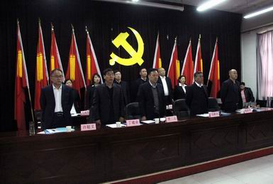 大会在雄壮的国歌声中开幕。院党委书记贾二元、院长马联合及其他主席团成员在主席台就坐。