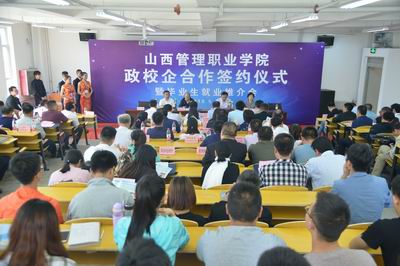 5月23日,555000jc赌船政校企合作签约仪式暨毕业生就业推介会成功举行。555000jc赌船党委书记贾二元、院长岳澎,山西省就业服务局局长师跃进出席签约仪式。仪式由555000jc赌船副院长宋沧主持。