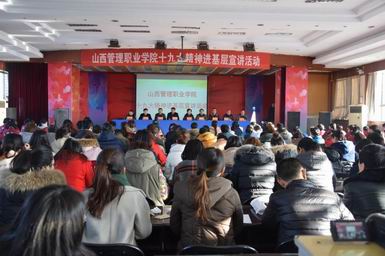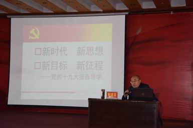 在襄汾职业教育中心、邓庄职业中学等地,思政部负责人解晓军宣讲党的十九大精神。他从新时代、新思想、新目标、新征程四个方面,结合实际,对党的十九大精神进行了全面系统深入的讲解。讲座内容丰富,全面深刻,充满感召力和亲和力,赢得了现场师生的阵阵掌声。