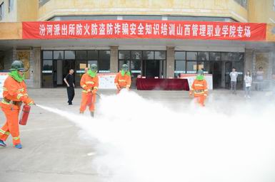 培训中,侯天荣根据校园近期发生的实际案例,生动讲述了火灾对人类和自然的重大危害性及其防火知识的重要性,讲解了消防安全“四个能力”的具体内容和消防器材(设施)的使用常识。郭艳青结合高校学生中经常发生的案例,讲述了“防盗”、“防诈骗”的基本常识。