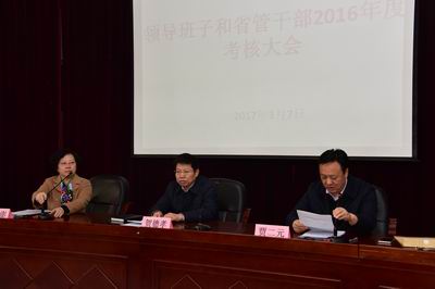 3月7日上午,我院2016年度领导班子和省管干部考核大会在实训楼四层报告厅召开。省人社厅考核组组长、副厅长贺德孝等一行6人出席会议。大会由院党委书记贾二元主持。
