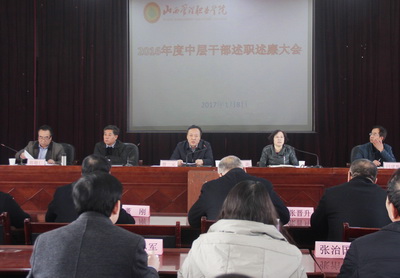 1月8日,学院2016年度中层干部述职述廉大会在实训楼报告厅召开。院党委书记贾二元,副院长马联合、闫建辉出席会议,院长岳澎主持。全体教职员工参加大会。