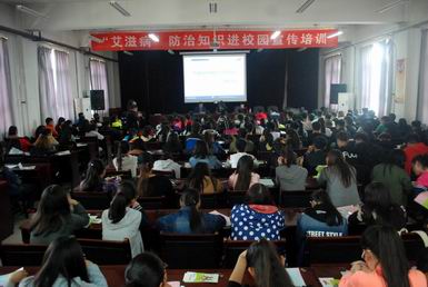 培训中,刘蓉讲解了近年来我国艾滋病发病情况,以及临汾市在预防控制艾滋病方面所作的工作。她就艾滋病的致病原理、发病状况、传播途径、防治措施等相关知识向大家进行了详细的介绍,使同学们消除了对艾滋病的恐惧心理,对生活中如何预防艾滋病等问题有了全面、科学的认识,真正认识到预防艾滋病的紧迫性和文明、健康有序生活方式的重要性。