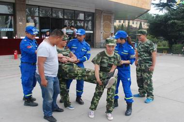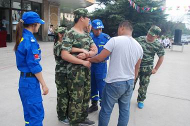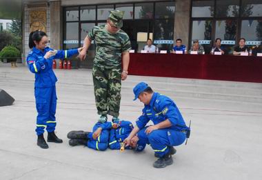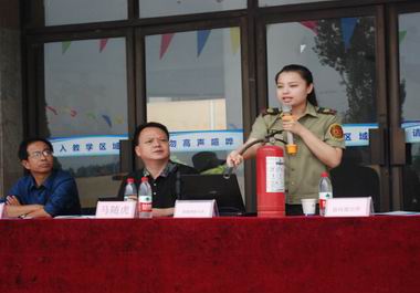 活动中,马随虎介绍了临汾盆地地质结构及防震减灾常识;李静讲解了消防安全知识以及灭火器的使用方法;王嘉介绍了蓝天志愿队的成立、组成、救援等情况,讲解了安全疏散、急救常识及防范逃生注意事项;李刚列举了蓝天救援队义务救援事例,对地震来临时的防范救护、疏散等事项进行了详细介绍,并与新生进行现场互动示范。之后,进行了消防疏散演练。