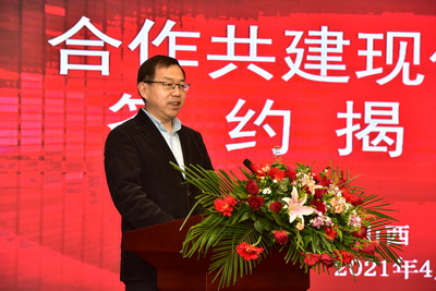 韦阳代表学院全体师生员工向参加仪式的各位领导、各位来宾表示热烈的欢迎和诚挚的感谢。他指出,今天的合作,将开启555000jc赌船“产教融合、校企合作”的新征程,在学院发展史上具有里程碑的意义。希望双方在人才培养模式、专业建设质量、校企合作课程、实训基地、产学研服务平台等方面进行深入探索,携手共推现代产业学院更好更快发展,为山西转型跨越发展提供强有力的人才支撑。他深信,在省教育厅、省人社厅的领导下,在临汾市各有关单位的大力支持下,这次合作一定能取得更大的成功,学院培养技能型人才发展的路子一定会越走越宽、越走越辉煌。