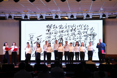 《杨开慧烈士写给毛泽东的家书》的深情诵读,使在场的师生泪眼蒙胧。这封写信人牺牲52年、收信人去世6年后才被发现的家书,字里行间缀满对亲人的牵挂、对革命的坚定信念,浸透着革命先辈的赤胆忠心与侠骨柔情。《蝶恋花·答李淑一》,满怀悲伤与热泪,意境雄浑苍茫,令人荡气回肠,将诵读会推向高潮。一个多小时的诵读,百余名师生先后登台,或温柔婉转,或激情澎湃,声情并茂,精彩纷呈,掌声阵阵,师生在欣赏红色经典隽永美妙魅力的同时,接受了一次生动的党史教育。在铿锵有力、激动人心《初心难忘,继往开来》诵读声中,诵读会中落下帷幕。