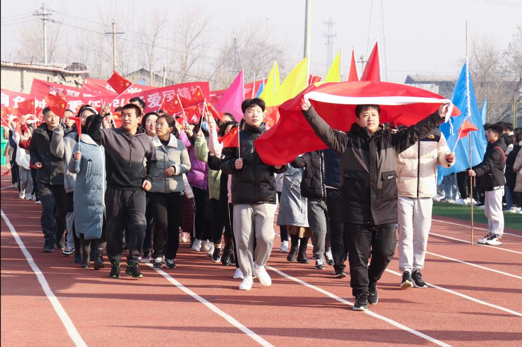 上午10时,马联合院长将国旗交到了护旗方队手中,“拥抱阳光 逐梦校园”护旗跑活动正式开始。由129名青年学生组成的彩旗队围绕田径场整齐肃立,他们手中迎风挥舞的彩旗象征着爱国青年的蓬勃力量。场地中央由国旗护卫队组成的129字样,昭示着我们要铭记历史,振兴中华。由有129名师生组成的6个护旗跑方队,象征着当代青年要传承一二九精神,将爱国的火种代代相传。冬日寒风微起,但大家眼神坚定,神采飞扬,加油声、呐喊声和脚步声交织在一起回荡在田径场上空,师生们用奔跑传承历史精神,表达了“请党放心 强国有我”的青春担当和爱国情怀。