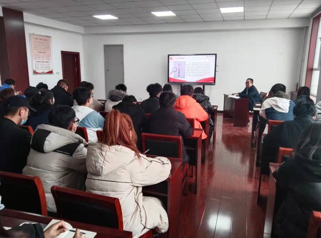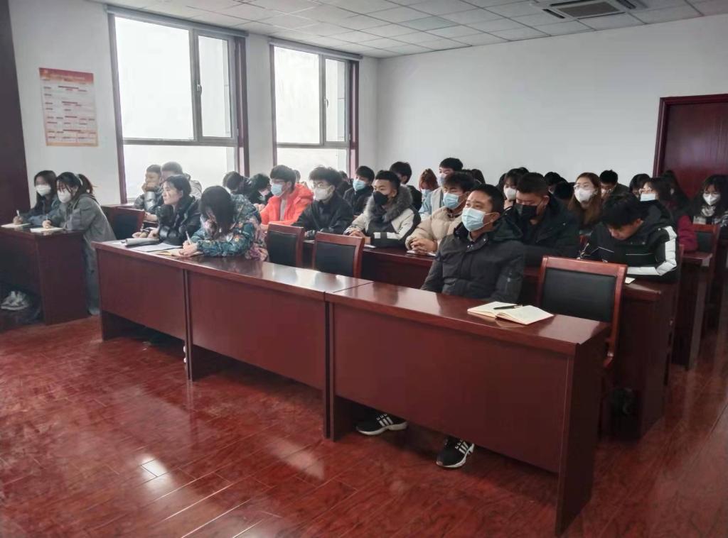 12月24日,院党委副书记郭敬仁以《三个历史决议 凝结着党的智慧荣光》为题,在崇德楼党员活动室,作党的十九届六中全会精神专题宣讲。各系团委书记,学团干部共计50余人参加。