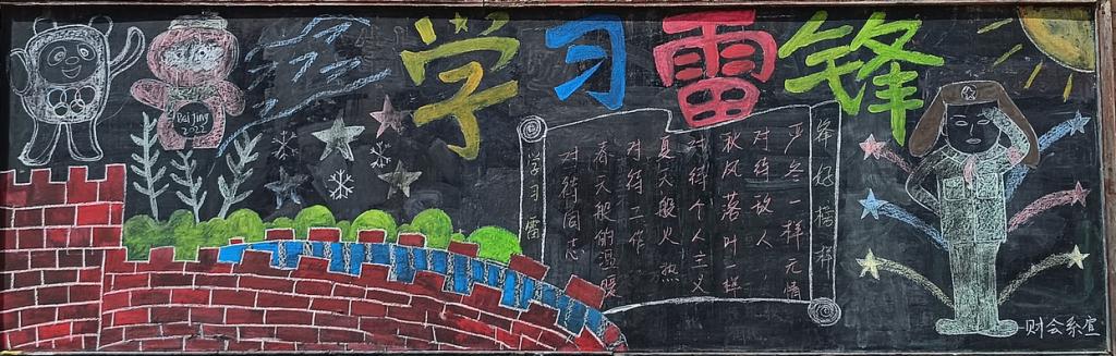 “我为雷锋精神点赞”主题板报。3月8日,财会系在学院平房教室绘制完成“我为雷锋精神点赞”主题板报。同学们广泛查找素材,精心设计版面,细致勾勒绘画,认真书写排版,积极宣传雷锋精神,营造学习氛围。