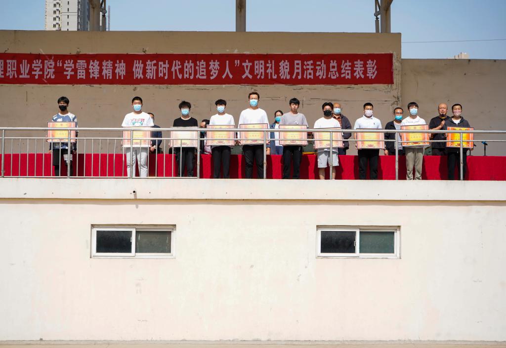 总结表彰。4月11日上午,学院2022年“学雷锋精神,做新时代的追梦人”文明礼貌月活动总结表彰大会在田径场隆重举行。院党委副书记郭敬仁,副院长尤彩虹,院党委委员、宣传部部长董刚出席并为获得文明教室和文明宿舍的先进集体颁奖。