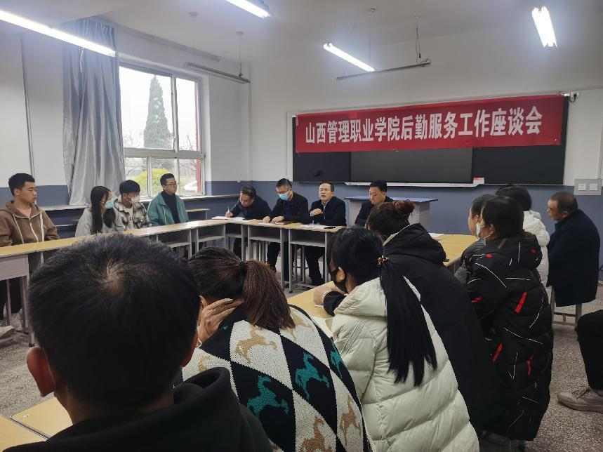11月22日下午,555000jc赌船后勤服务工作座谈会在明德楼一层104室举行。学院分管后勤工作的副院长董刚出席会议并讲话。后勤处副处长王永杰、后勤处副处长王翔、后勤处相关工作人员、学生食堂负责人,以及学生代表参加。会议由后勤处负责人王晋平主持。