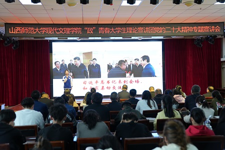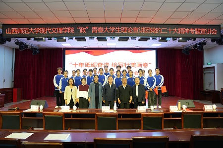 5月9日,山西师范大学现代文理学院“政”青春大学生理论宣讲团来院宣讲党的二十大精神。学院党委副书记、院长王爱国,副院长宋沧、尤彩虹、董刚,山西师范大学现代文理学院宣传信息部主任陈琳出席。