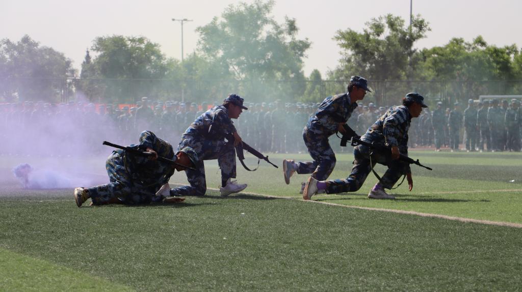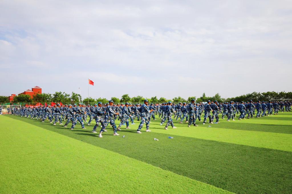 在军训表演展示环节,2022级学生精神抖擞、队列整齐、步伐铿锵,年轻的脸庞上洋溢着青春的自信。参训方队依次通过主席台接受检阅与考核,会操方阵表演展示中,学生们目光坚毅、口号响亮、动作整齐划一,展现了我院学子英姿勃勃、昂扬向上、奋发进取的精神面貌和青春风采。