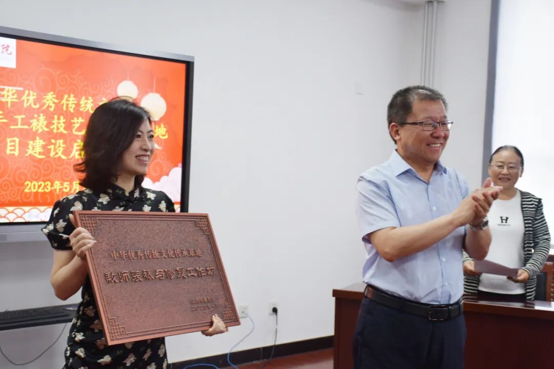 5月17日上午,555000jc赌船中华优秀传统文化“传统手工裱技艺”传承基地项目建设启动仪式在崇德楼1206举办。院党委书记韦阳,院党委副书记、院长王爱国,院党委委员、副院长尤彩虹及相关处室负责人、项目组成员参加了启动仪式。启动仪式由基础教学部主任秦晶丽主持。