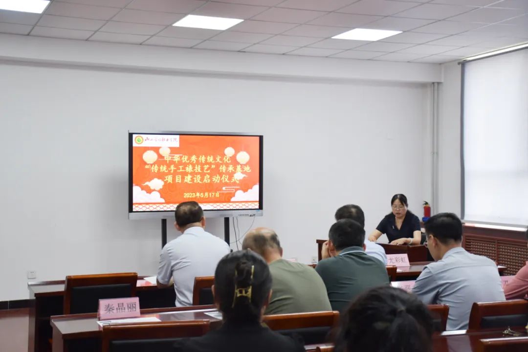 她强调,项目建设团队及各职能部门要认真学习教育部、山西省及临汾市关于大力弘扬中华优秀传统文化的重要精神,坚持德技并修,坚持把文化素养培育与思想政治教育、专业技术技能培养有机融合,引领广大师生不断增强文化自信,让传习所、手工坊的学员们成为中华优秀传统文化的弘扬者、传播者和继承者,通过报告会、微视频、展示展演、交流研讨活动等,大力弘扬自强不息、敬业笃行等传统美德。以“学非遗、传非遗、展非遗”为重点,引导学生结合所学专业,创作展现具有地域特征、民族特色和我院职业教育特点的传统手工裱技艺类作品,开展系列展示,培育劳动精神、工匠精神,提高学生参与非遗学习、保护、传承和宣传的积极性。最后她祝愿基地今后在学校各级领导和各部门的共同努力下,取得突破性成绩,圆满完成建设任务。
