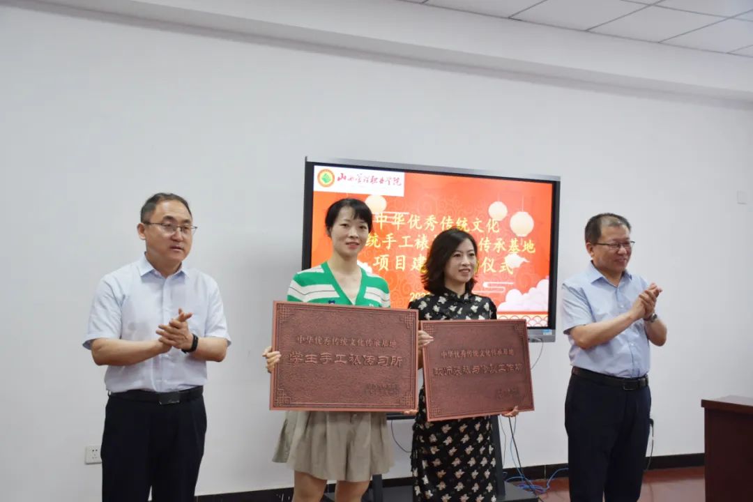 启动仪式上,韦阳为项目建设基地“手工坊”授牌,王爱国为项目建设基地“传习所”授牌。