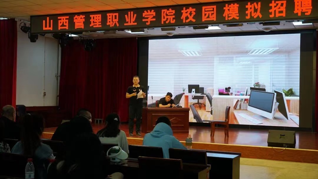 应邀担任此次校园模拟招聘会的“面试官”分别是我院2017届财务管理专业毕业生王若钝和2022届市场营销专业毕业生王润腾。他们来自山西太原肖邦家居有限公司,分别担任公司人力资源总监和开创部经理,都是我院的优秀校友。