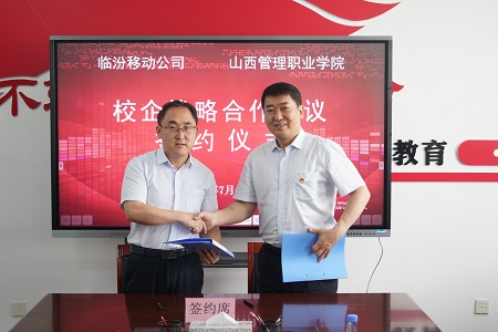 7月14日上午,我院与中国移动通信集团山西有限公司临汾分公司举行战略合作协议签约仪式。院党委书记韦阳出席签约仪式。院党委副书记、院长王爱国与临汾移动公司党委书记、总经理郭怀军代表双方签订《校企战略合作暨校园网络有线无线一体化建设及运维服务项目协议》。