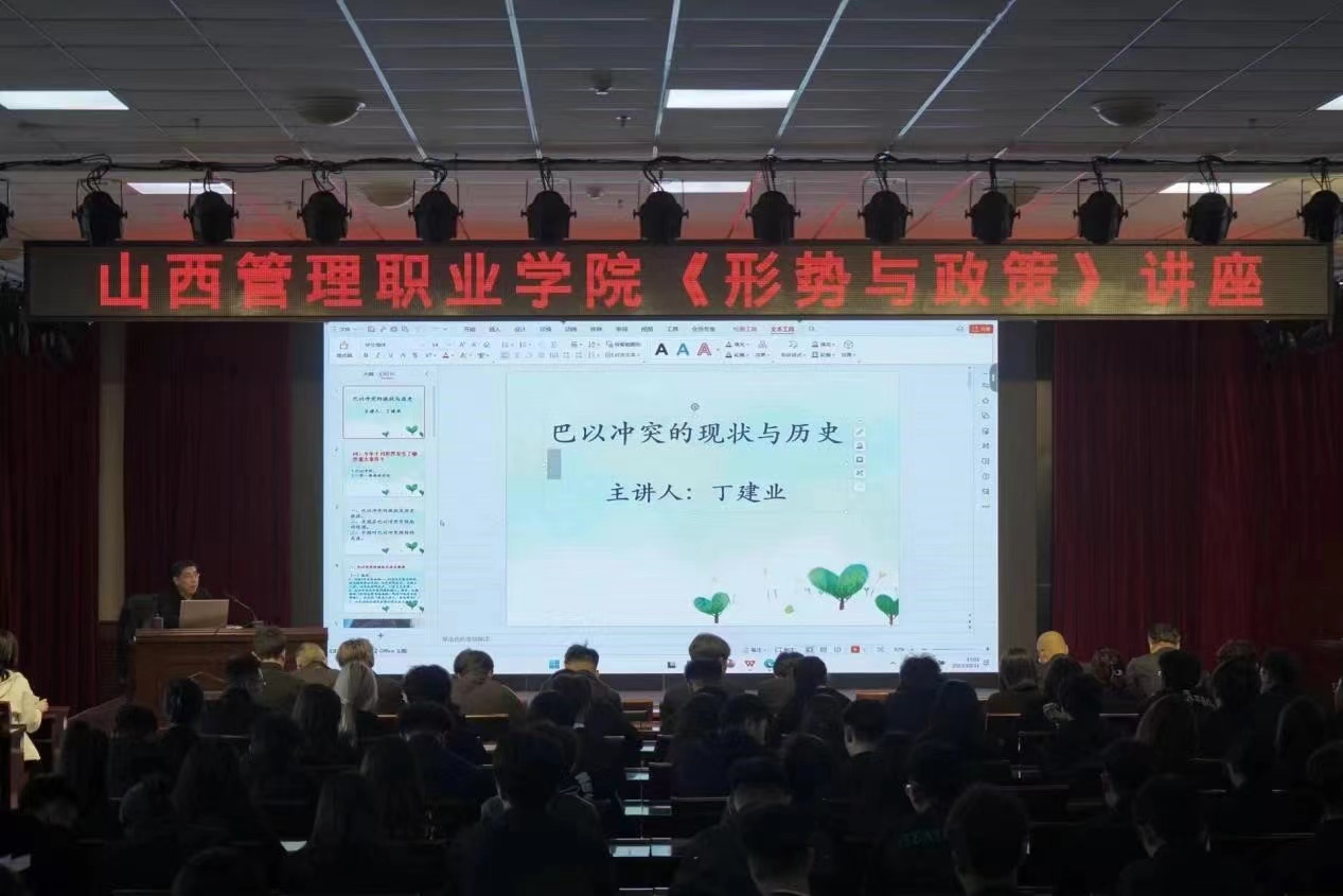 “风声雨声读书声,声声入耳;家事国事天下事,事事关心。”根据学院教学工作安排,10月31日下午,学院党委副书记丁建业以《巴以冲突的现状与历史》为题,在崇德楼三楼报告厅为全院学生干部作形势与政策专题讲座。思政部全体教师共同聆听了本次讲座。