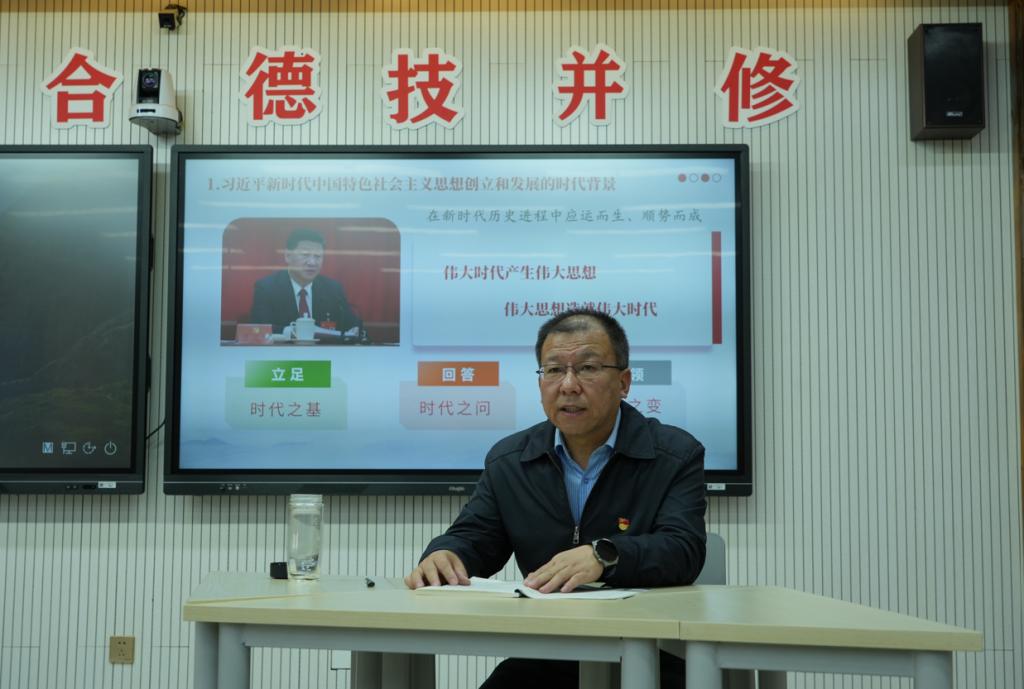 根据学院教学工作安排,11月7日下午,院党委书记韦阳以《开辟马克思主义中国化时代化新境界》为题,在综合楼智慧教室901以直播的形式,为全院学生作形势与政策专题讲座。思政部全体教师共同聆听了本次讲座。
