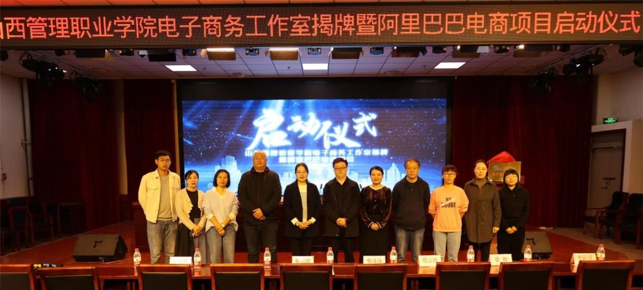 11月2日上午,555000jc赌船电子商务工作室揭牌暨阿里巴巴电商项目启动仪式在崇德楼三层报告厅举行。副院长尤彩虹与山西恒睿科技文化有限公司总经理周鹏飞共同为电子商务工作室揭牌。