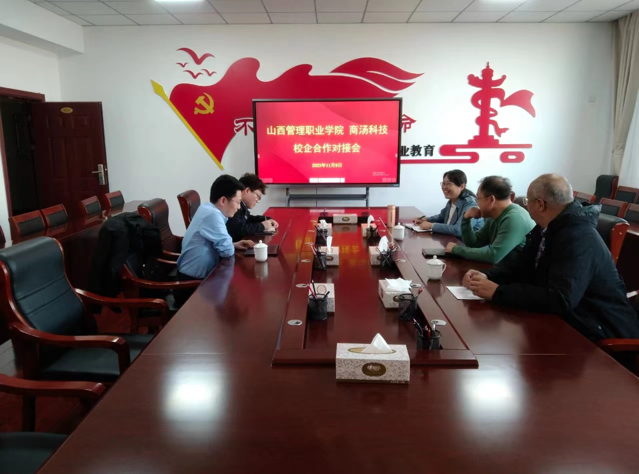 11月9日,商汤科技院校业务独家开展单位-商予科技(北京)有限公司市场部大区总经理罗正,山西汇融教育科技有限公司总经理梁崔波一行到我院考察交流。学院党委副书记、院长王爱国,党委委员、副院长尤彩虹出席座谈会。