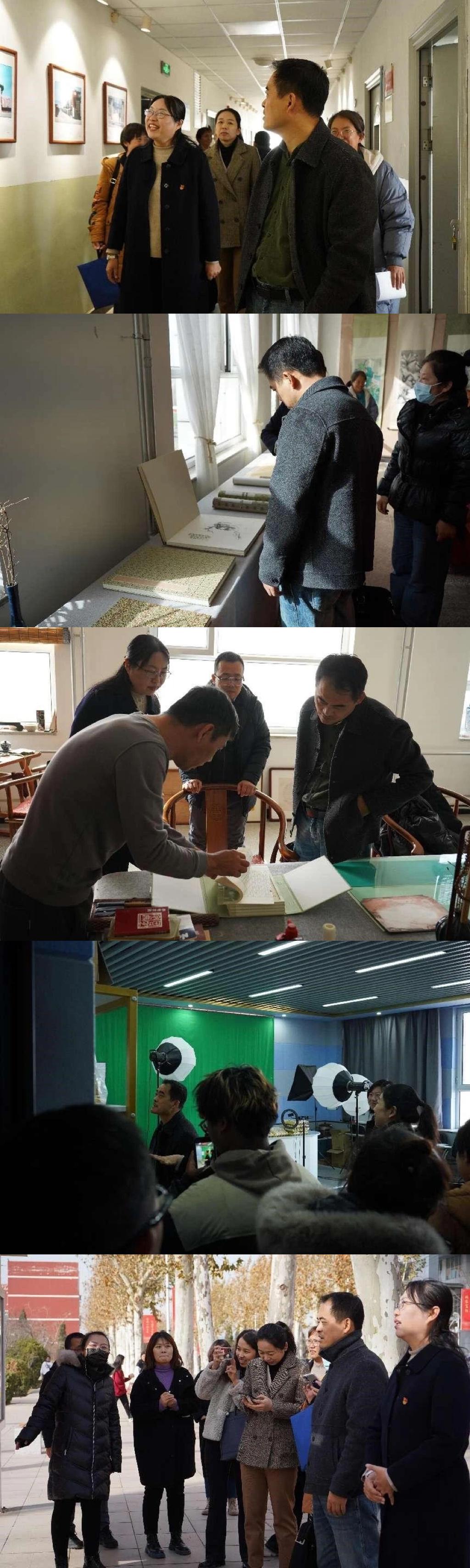 最后,在院党委委员、副院长尤彩虹、教务教学部副部长左卫刚和学院语委办全体工作人员的陪同下,检查组实地察看了校园语言文字规范化建设环境。通过走访文化艺术系的“书画装裱实训室”“手工裱传习所”“手工裱传承工作坊”“书法古籍资料室”和财贸系的“电商实训室”以及院广播站,检查组深刻感受到了我院师生对中华优秀文化的认同感、自豪感和自信心。在参观校园环境时,我院的各种宣传标语、板报、海报等内容也充分展示了全院营造学习使用国家通用语言文字的浓厚氛围,尤其是学生食堂对面的永久性的语言文字宣传栏也得到了检查组的一致好评。