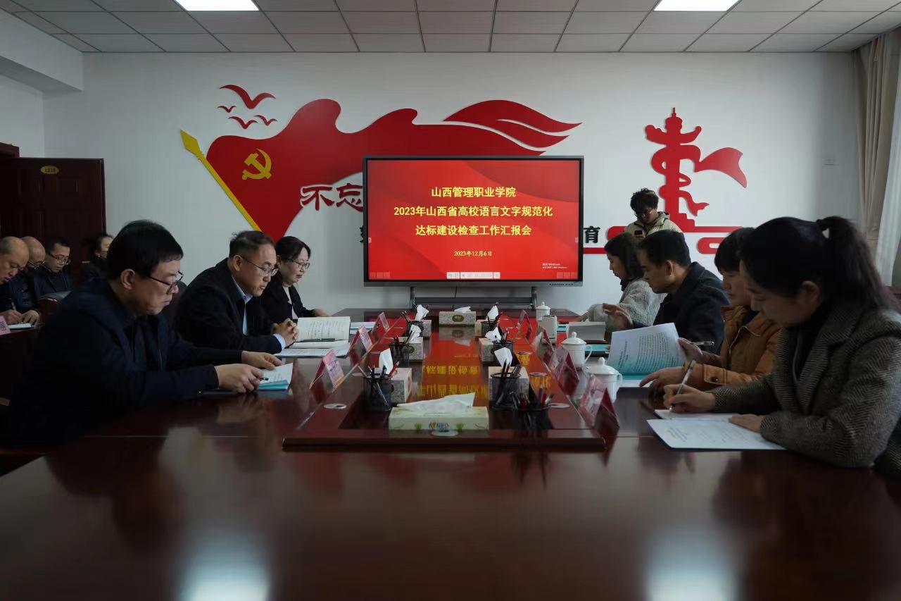2023年12月6日,山西教育发展服务中心副主任周国强一行四人到我院开展语言文字工作达标验收检查工作。学院党委副书记、院长王爱国,院党委委员、副院长尤彩虹及学院各有关部门负责人和学院语委办全体人员参加了此次验收检查工作。