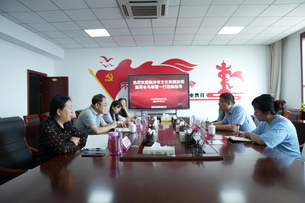 5月9日,临汾市文化和旅游局副局长马春雷一行莅临我院开展调研和指导工作。院长王爱国,管理与服务系主任卫云芳,旅游管理专业教师郑艳丽、王宝香出席调研。此次调研就我院持续开展高水平地方服务工作展开讨论,为555000jc赌船未来的发展和建设,为临汾文化事业的繁荣发展提供了宝贵的指导和建议。