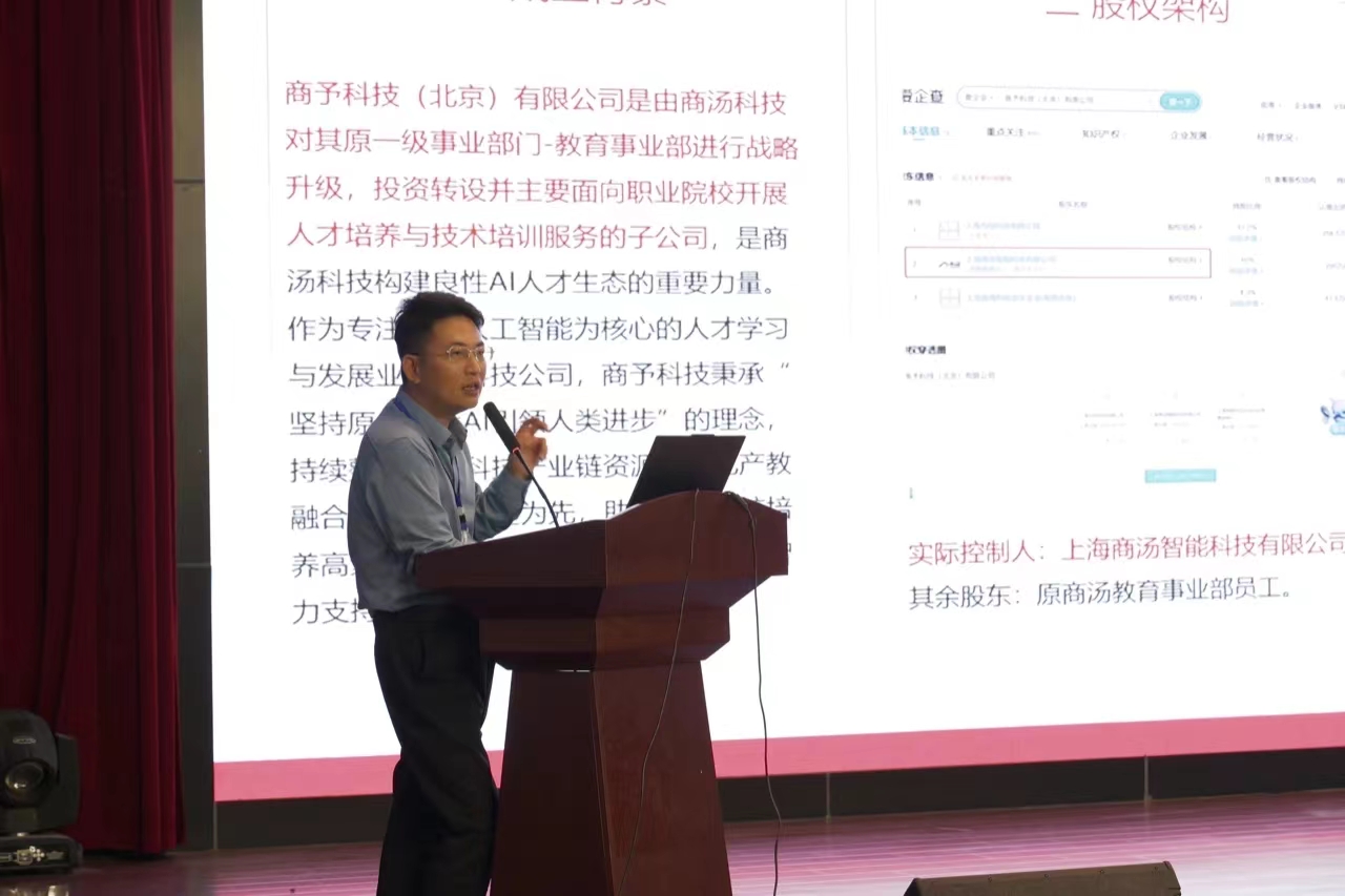 商予科技(北京)有限公司联合创始人商务总监罗正作《商汤院校业务区域服务中心建设探索与实践》主旨报告。他从校企深度合作的理念、内容、等方面讲解企业的探索与实践。