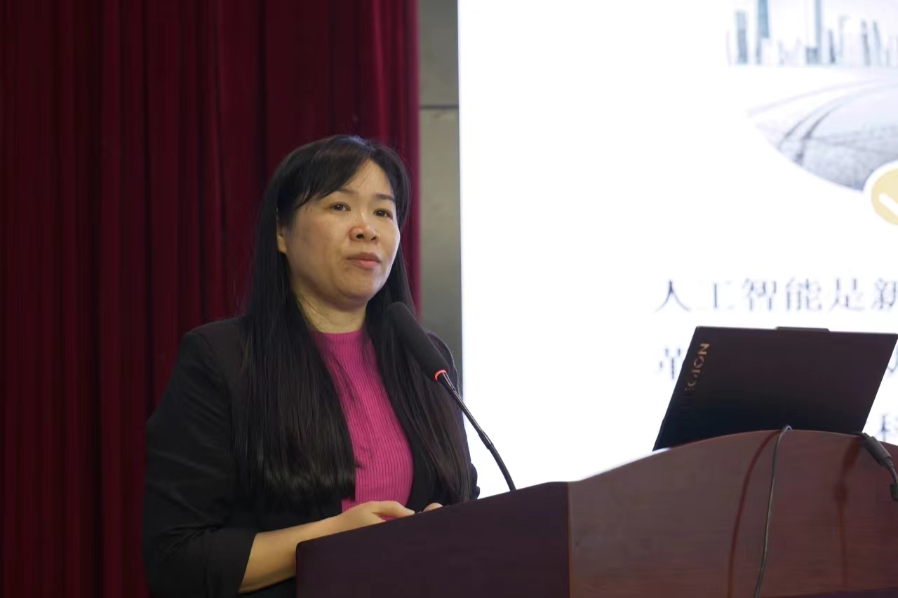 广州市教育研究院中职信息技术教研员张燕燕作《中等职业学校人工智能技术与应用专业建设探索与实践》主旨报告。她从“中等职业学校为什么要开设人工智能专业?人工智能专业应该上什么课?教师队伍如何建设?”等6个问题对中等职业学校人工智能技术与应用专业建设探索与实践课题展开讲解。