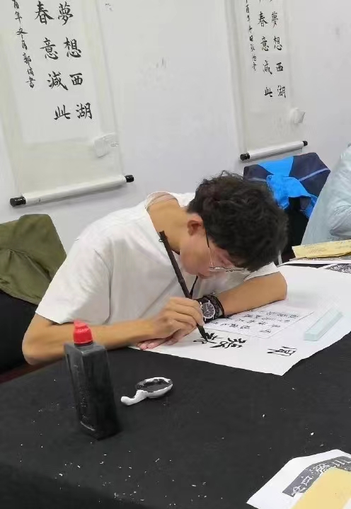 “笔墨中国”分为软笔和硬笔。初赛收到书法作品73件,软笔21件,硬笔52件。参加决赛的软笔10幅,艺术系20级视觉一班张谦同学的作品获得一等奖;硬笔12幅,财会系21级会计二班王金华同学的作品获得一等奖。