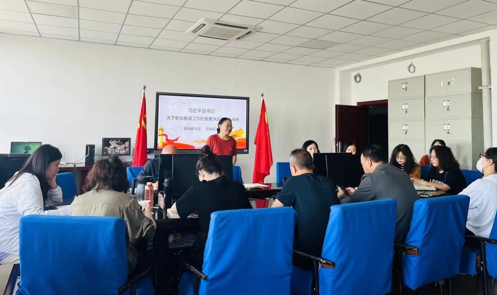 今天是我院职业教育活动周开启后的第一个工作日,基础教学部党支部、基础部、思政部于5月15日上午在综合楼1117室开展宣传职业教育重要文件精神学习活动,活动由支部书记、基础教学部主任秦晶丽主持,支部全体党员及教师参加。