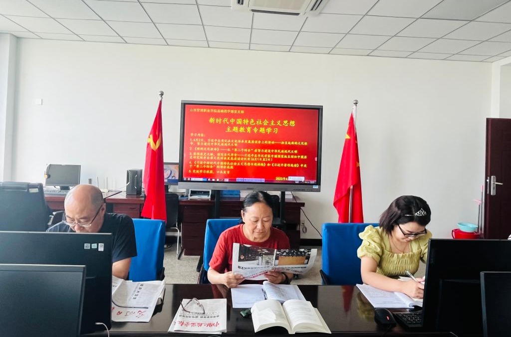 为深入贯彻党的二十大精神,学习宣传贯彻习近平新时代中国特色社会主义思想,6月7日下午,基础教学部党支部在崇德楼1117室开展主题教育集中学习。党支部书记秦晶丽主持。支部全体党员参加。