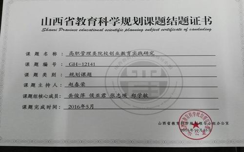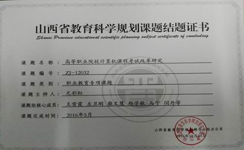 近日,山西省教育科学规划领导小组办公室通报了2016年度教育科学规划课题结题验收情况,我院2项课题通过结题鉴定。尤彩虹副教授主持的“高等职业院校计算机课程考试改革研究”鉴定结论为良好,赵春荣副教授主持的“告知管理类院校创业教育实践研究”鉴定结论为合格。据悉,共有205项课题通过鉴定,其中:优秀17项、良好103项、合格85项。