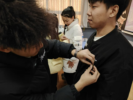 12月4日,人工智能技术系举行2024年新团员入团仪式。入团仪式上,优秀团员代表们身姿挺拔,稳步上前为新团员们佩戴团徽,团徽在新团员们的胸前闪耀,恰似希望火种,燃起新团员们内心深处的理想火焰。随后,新团员右臂奋力高举,右拳紧握,面向团旗宣誓。