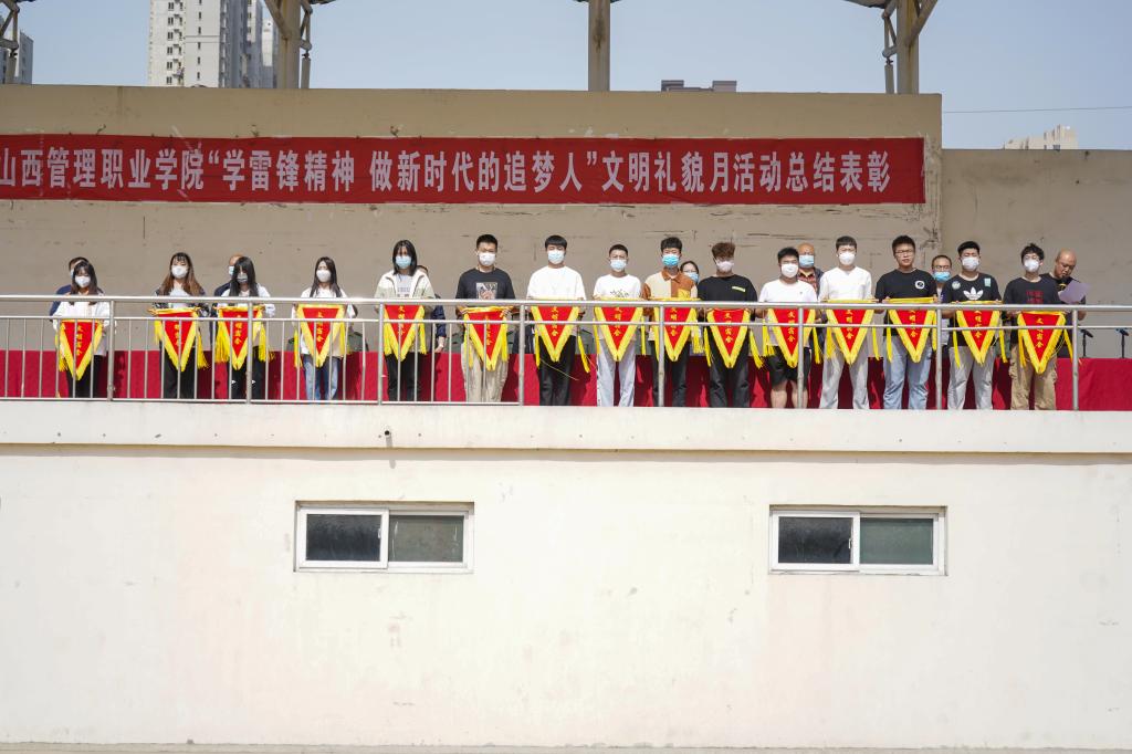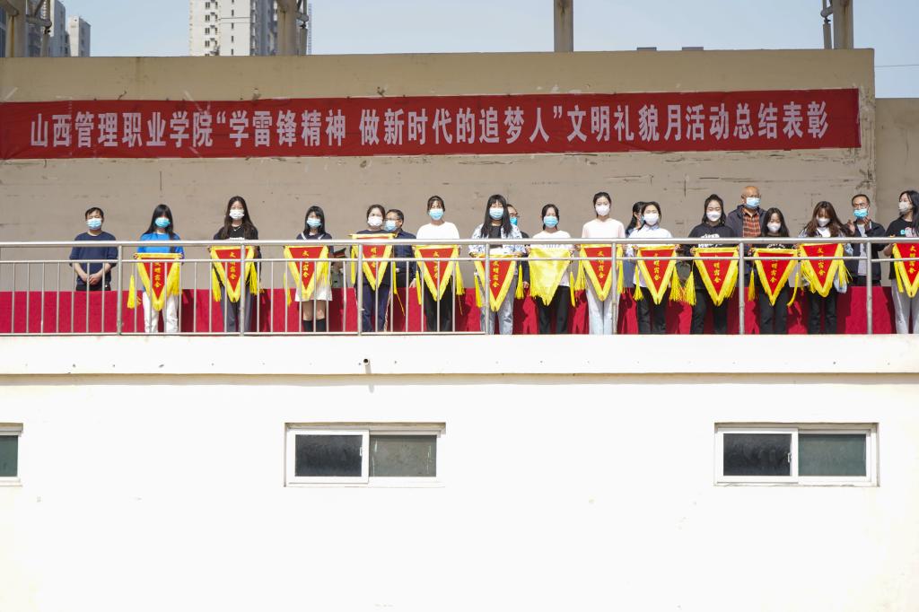 总结表彰。4月11日上午,学院2022年“学雷锋精神,做新时代的追梦人”文明礼貌月活动总结表彰大会在田径场隆重举行。院党委副书记郭敬仁,副院长尤彩虹,院党委委员、宣传部部长董刚出席并为获得文明教室和文明宿舍的先进集体颁奖。