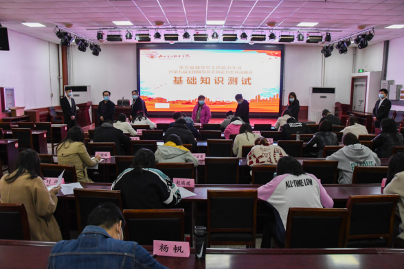 3月29日,我院第五届辅导员素质能力大赛暨第九届全国辅导员素质能力大赛选拔赛基础知识测试和辅导员素质能力培训在崇德楼三层学术报告厅举行。院党委副书记郭敬仁,副院长尤彩虹亲临考场指导工作。