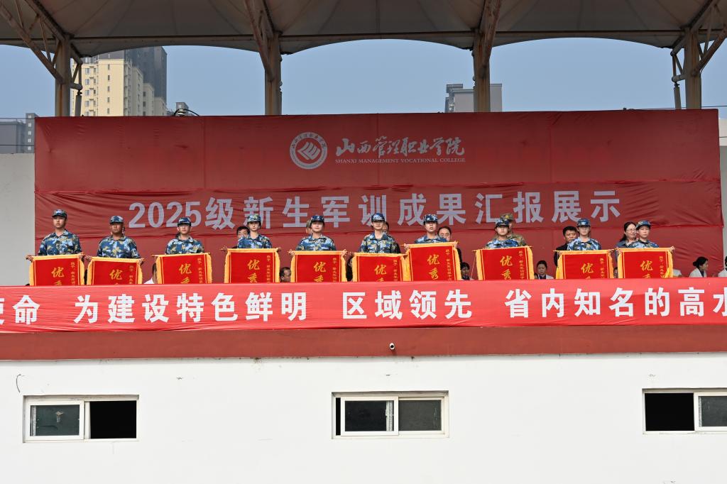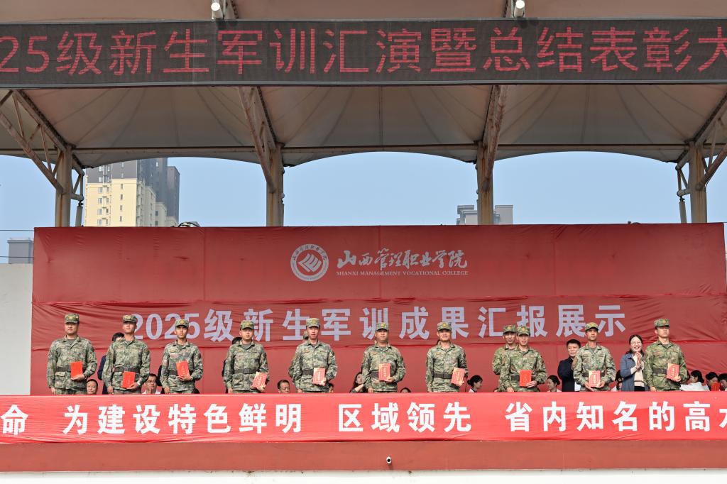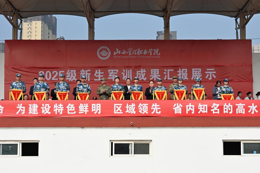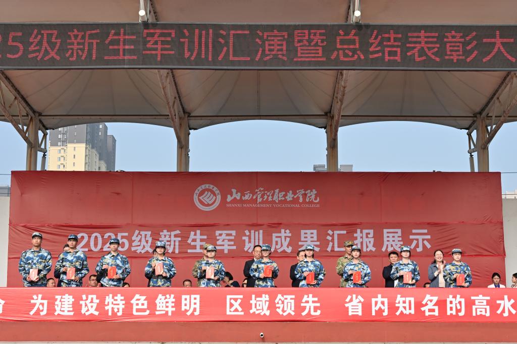 9月30日,555000jc赌船2025级新生军训汇演暨总结表彰大会在田径场隆重举行。学院党委班子成员出席大会。大会由党委委员、副院长尤彩虹主持。