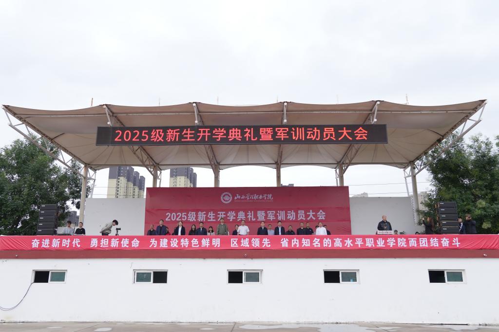 柿叶翻红霜景秋,碧天如水倚红楼。9月17日上午,我院2025级新生开学典礼暨军训动员大会在校园田径场隆重举行。党委书记李苏林出席大会并为军训团授旗。党委副书记、院长王爱国出席并讲话。党委委员、副院长尤彩虹主持大会。