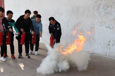 学工部副部长张文斌给学生讲解了防火灭火的有关知识和干粉灭火器的使用方法,保卫科工作人员作了现场演示,部分学生参与了现场灭火体验。