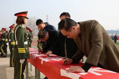 仪式结束后,与会领导、班主任老师和广大同学在宣传横幅上郑重的签上了自己的名字,表达了“与文明同行,树青春作为”的决心。