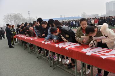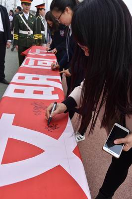 仪式结束后,举行了“做自律模范,与文明同行”大型签名仪式。参加仪式的领导、班主任老师和广大同学在横幅上郑重的签上了自己的名字,表达了“与文明同行”的决心。