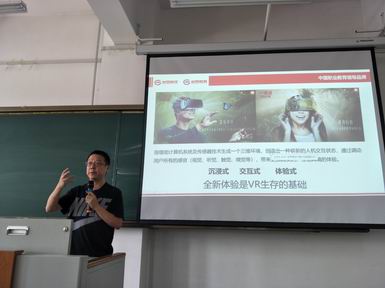 5月28日下午,信息管理系在阶梯四教室举办了VR技术讲座。深圳前海中清龙图教育科技有限公司CEO王暘主讲。系主任尤彩虹、系副主任王雪霞、专业教师夏鹏和2017级全体学生及2018级部分学生听取了讲座。